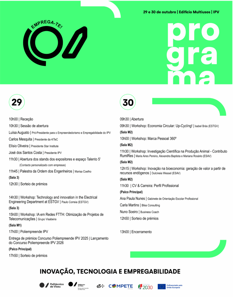 O Instituto Politécnico de Viseu convida estudantes, diplomados e toda a comunidade a participar na Feira de Emprego “Emprega-te”, um espaço de oportunidades, conhecimento e networking.